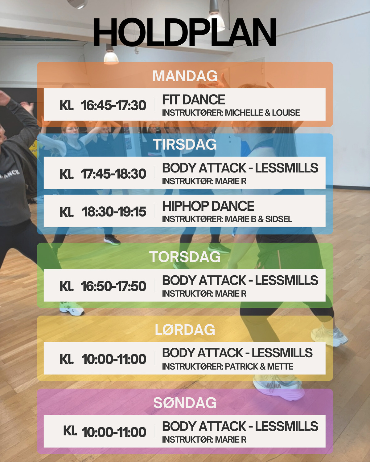 I løbet af 2026 arbejder vi på at lancere endnu flere spændende hold – Fit&Jump, Step, Power Dance Workout og meget mere!